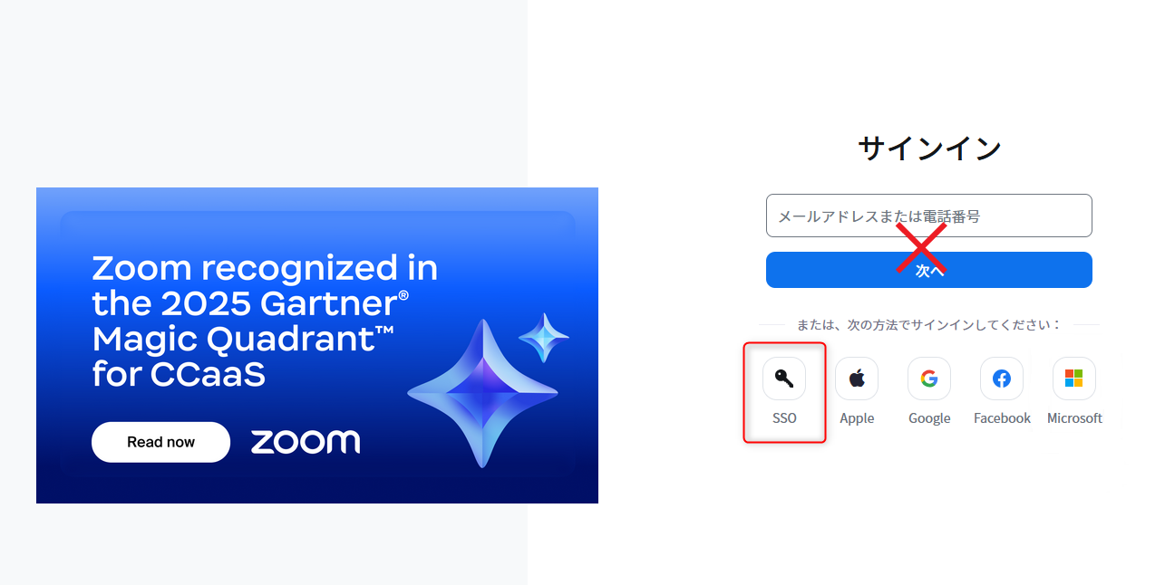 Note: When the Zoom login screen (email address and Zoom password entry) appears, please refer to “How to Log in from the Zoom Login Screen“.