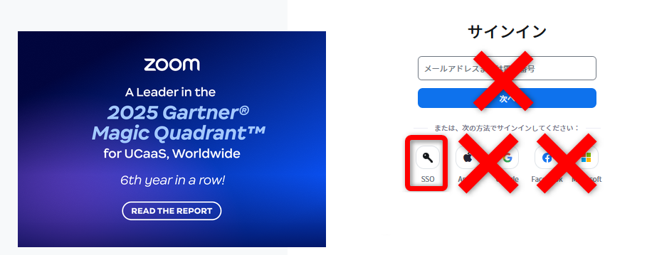 Zoomのログイン画面からのログイン方法